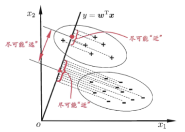 欲使异类样例的投影点尽可能远离,可以让类中心之间的距离尽可能大,即 尽可能小