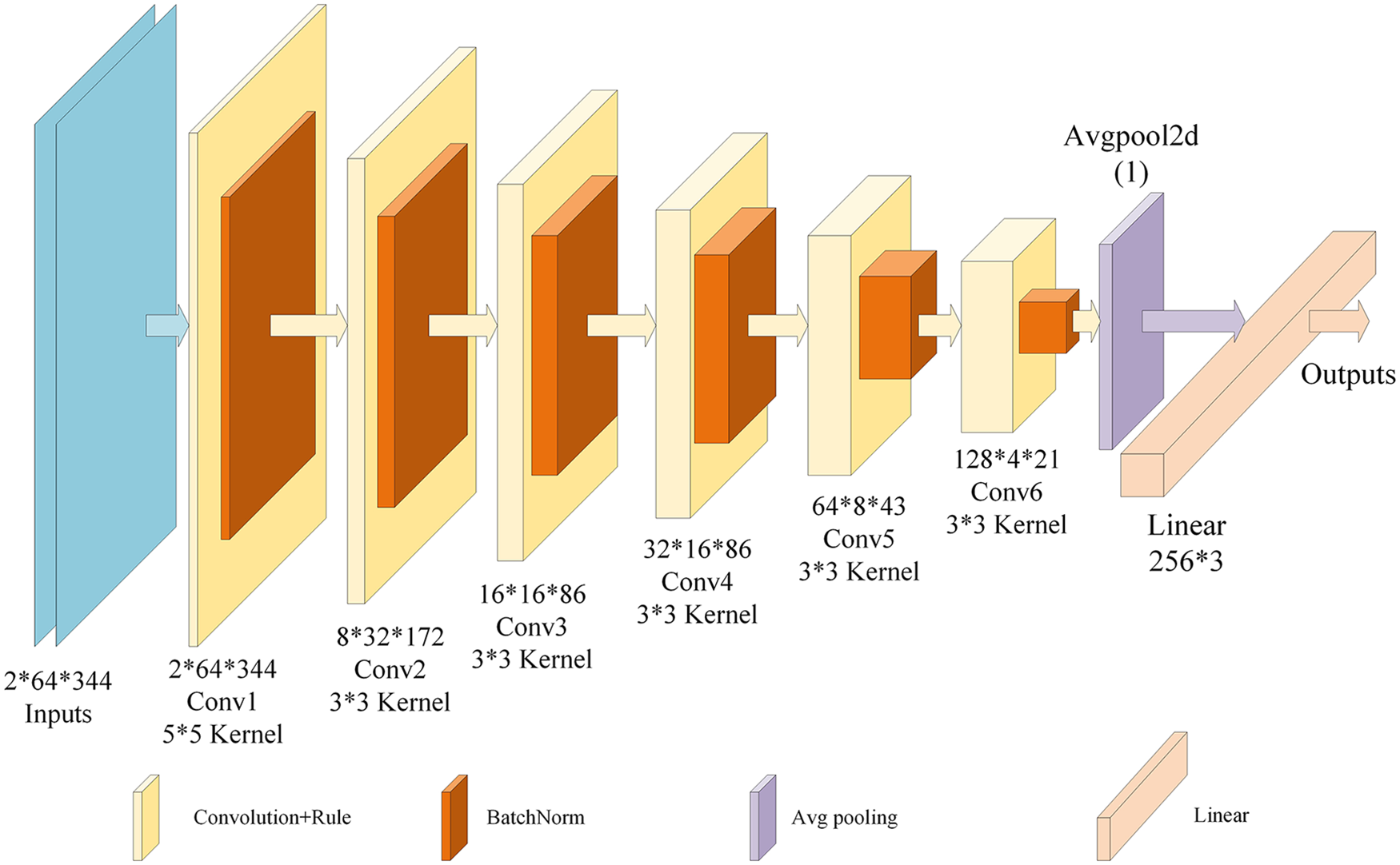 | Conv block(×4) | Conv(3×1, L filters) → BN → LReLU(negative slope=0.001) → MaxPool(2×1) |