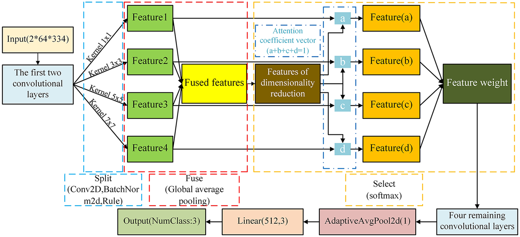 每个 1D-CNN 分支包含 4 个 Conv 块;每个 Conv 块由以下层组成: